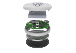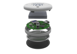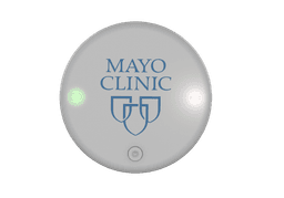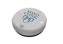 A compact, puck-shaped medical recording device designed for clinical environments. The device features an LSR (Liquid Silicone Rubber) overmoulded enclosure that provides a soft, antimicrobial surface finish suitable for repeated sterilisation. The minimalist design includes a single power button, status LED, and USB-C interface, enabling bedside data recording with minimal clinician interaction. The low-profile form factor sits discreetly on any surface while maintaining a premium medical aesthetic.